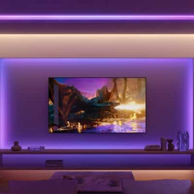 The Phoscon Hive scores with a very even illumination and also very strong colour. In particular, the range from pink to red to green and turquoise is covered very well. Only with purple does the Phoscon Hive perhaps have a few weaknesses, but I would not consider that a major point of criticism. The small table lamp can be dimmed continuously and, in my opinion, also very far down.